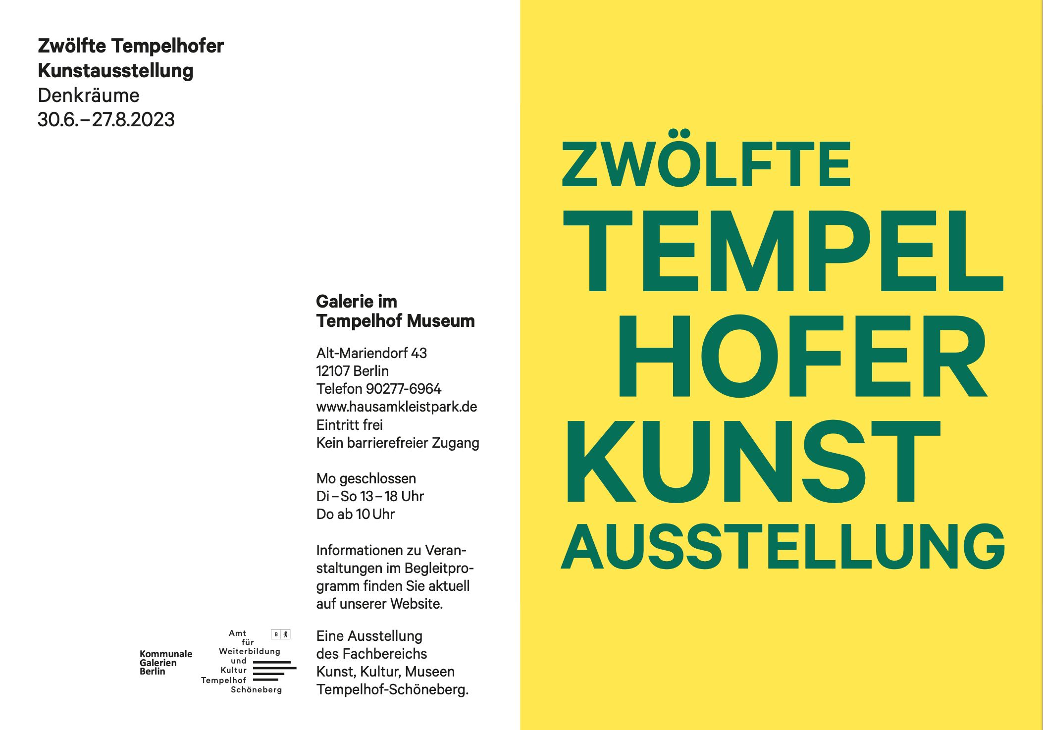 ZWÖLFTEN TEMPELHOFER KUNSTAUSSTELLUNG / Haus am Kleistpark / Galerie im Tempelhof Museum / Berlin, DE.