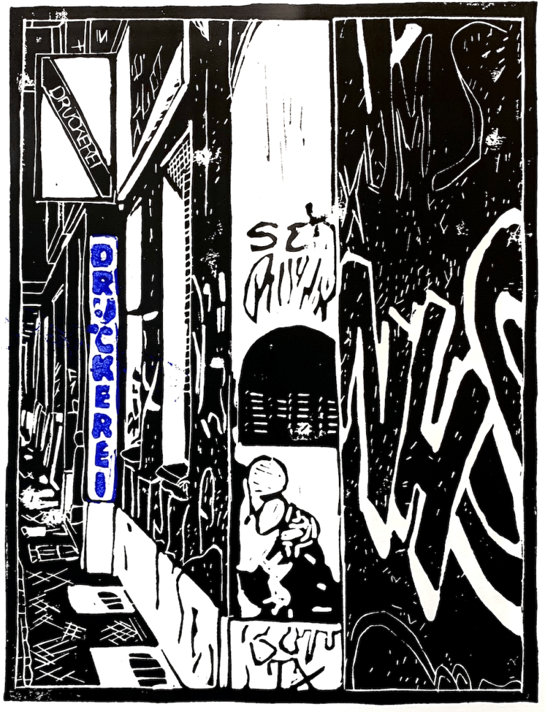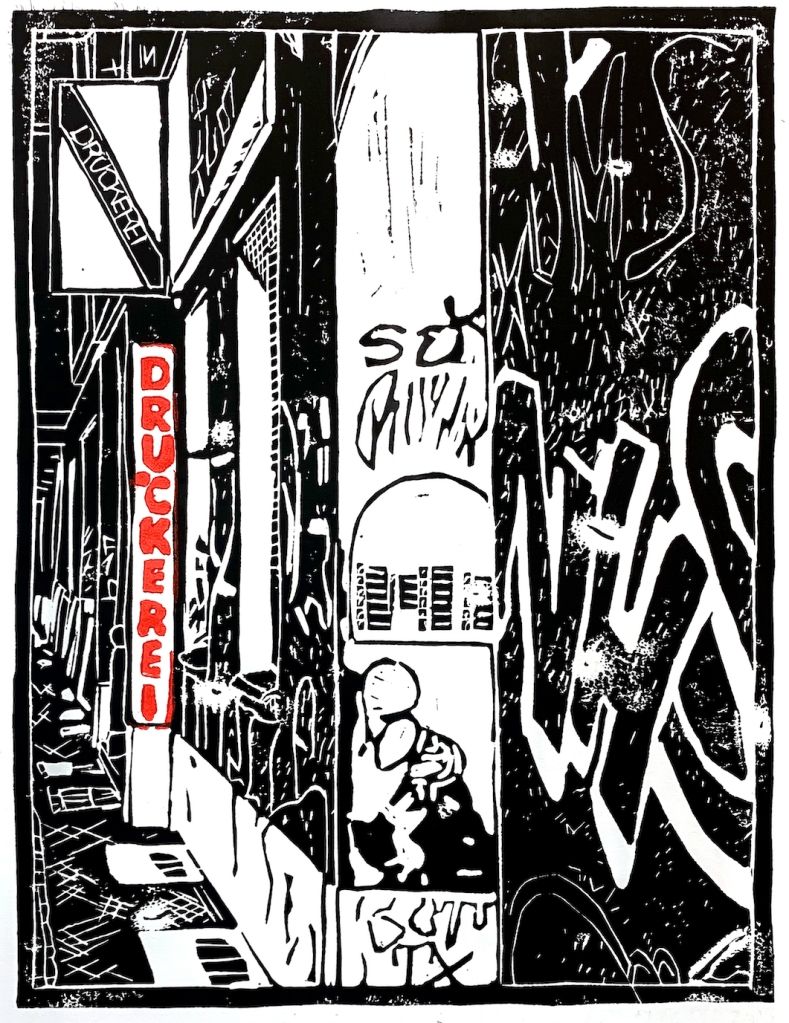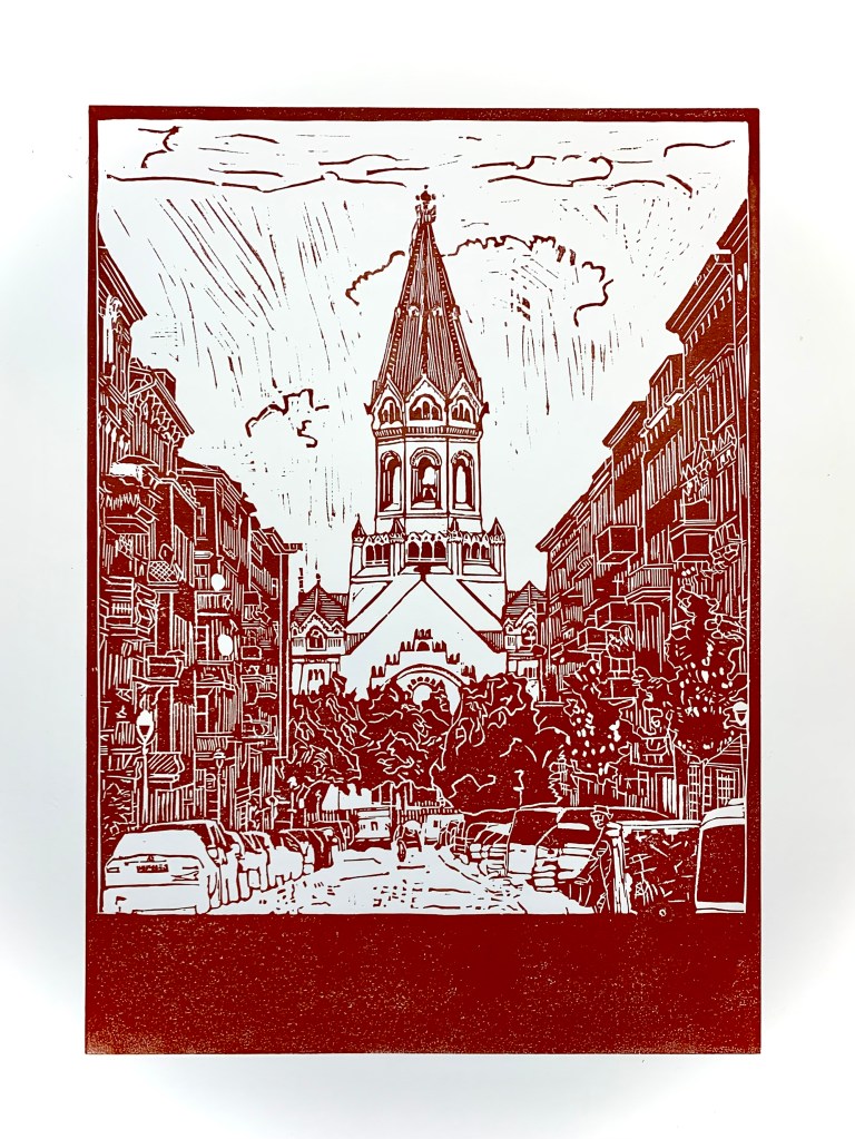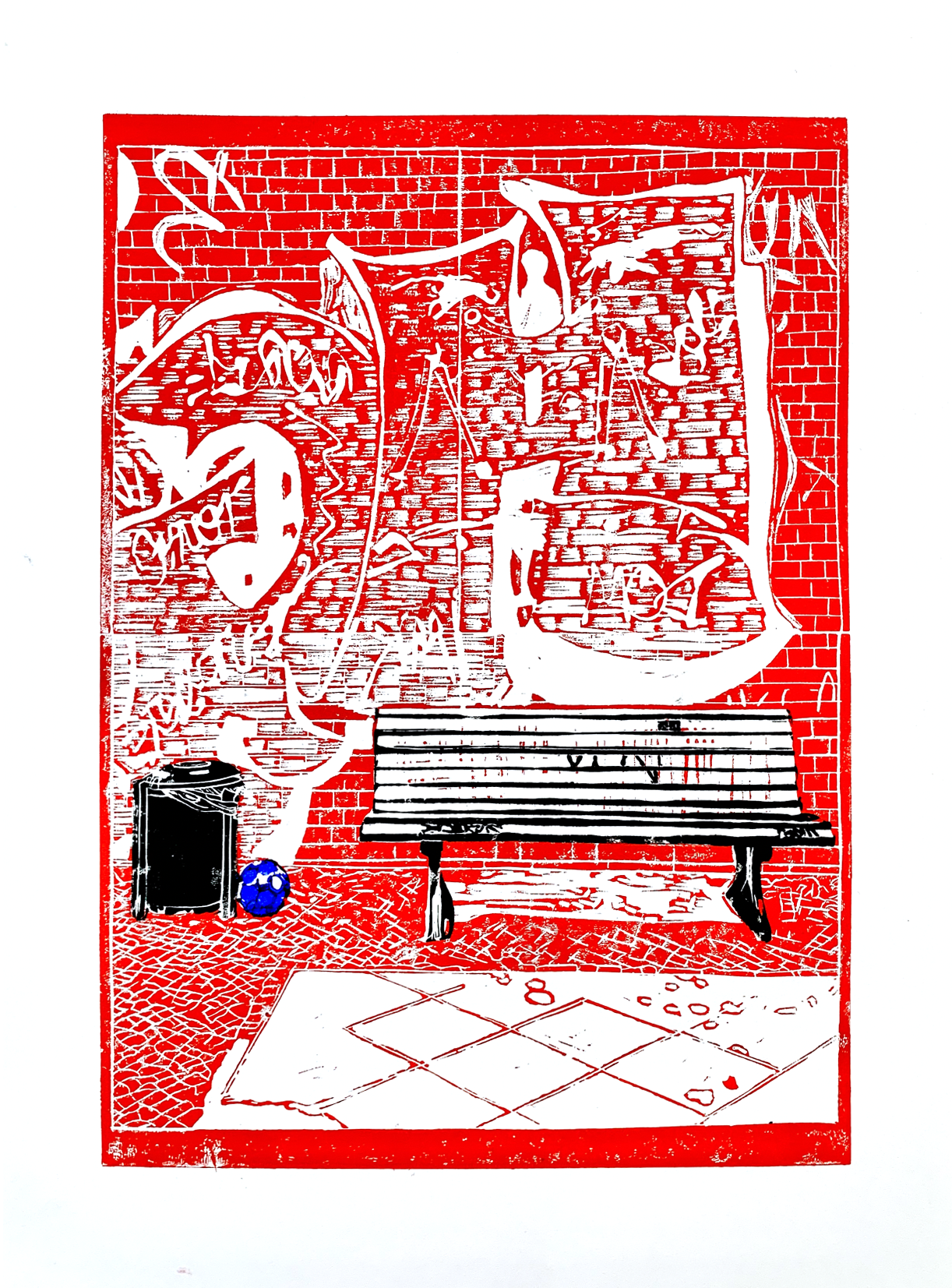 YORCKSTRASSE (blue, orange, green)_A3_linocut